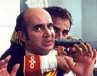 Manifestante vestido de Bolívar protesta em frente da polícia. Protestos efetuados em 2005. |