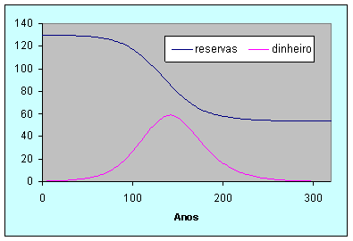 A princípio com um suprimento abundante de reservas, grandes quantidades eram mineradas com pouco esforço, sem usar muitos bens e serviços. Com preços estabelecidos para a reserva, (P1) e para os bens e serviçoes necessários (P2), a companhia faz dinheiro. mais tarde quanto reservas estão menos disponíveis a reserva é menor, e as vendas são menores do que as necessárias para manter o processo de mineração. A operação para algum minério pode ser deixado no solo.