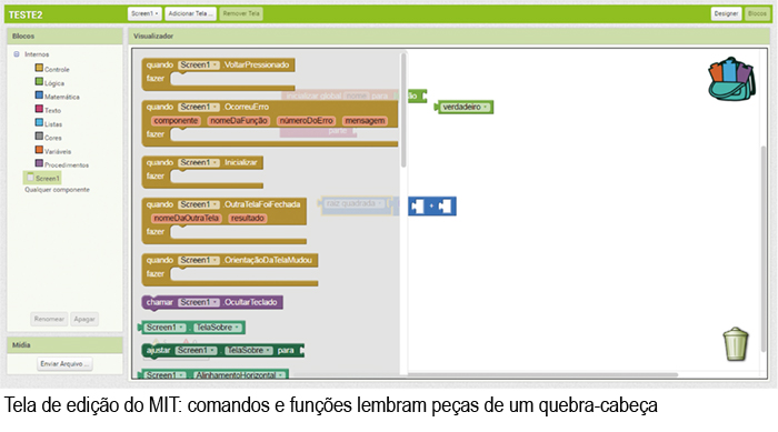 “A facilidade da linguagem de programação visual trouxe essa potencialidade, de abrir a criação de aplicativos para um público não especialista, um público leigo”, disse Valle. “Você tem, essencialmente, uma paleta de componentes, que podem ser uma caixa de texto, um botão, uma barra de rolagem... O primeiro passo é o desenho gráfico da tela, como eu quero que ela se organize. Você pega os elementos desejados – por exemplo, uma caixa de senha e um botão – e arrasta para a tela do celular. Em seguida vem a programação, dizendo, por exemplo, que quando o usuário clicar no botão, eu quero validar a senha”, exemplificou.
