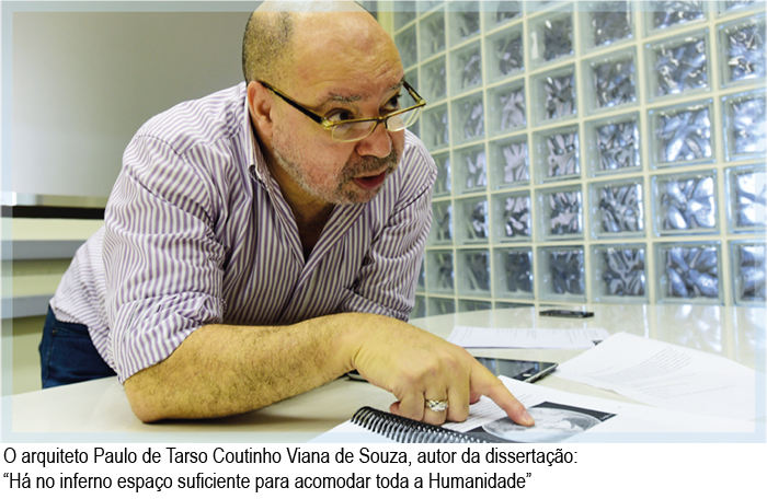 Arquiteto de múltiplos interesses, Paulo de Tarso voltou à universidade 30 anos depois de ter se formado. Estava em dúvida quanto ao tema da pesquisa: se analisava os anúncios de acompanhantes que coleciona há décadas, ou se partia para o inferno. Escolhida a segunda opção, foi buscar as raízes do projeto na obra A Divina Comédia, de Dante Alighieri.