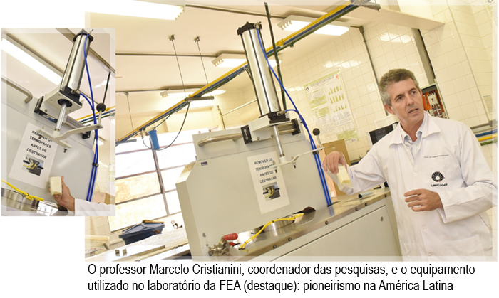 O professor Marcelo Cristianini, do Departamento de Tecnologia de Alimentos, da Faculdade de Engenharia de Alimentos (FEA) da Unicamp, mantém linha de pesquisa em que se dedica a estudar o efeito do emprego da alta pressão isostática (HPP – High Pressure Processing) na extensão da vida de prateleira de alimentos processados, com vistas a manter-lhes também as características nutricionais e sensoriais mais próximas possíveis do alimento innatura. O processamento à alta pressão isostática consiste na aplicação uniforme de determinadas pressões em um produto. O trabalho desenvolvido é praticamente inédito no Brasil e, quanto se sabe, o equipamento piloto de pesquisa utilizado no laboratório da FEA é único do tipo na América Latina.