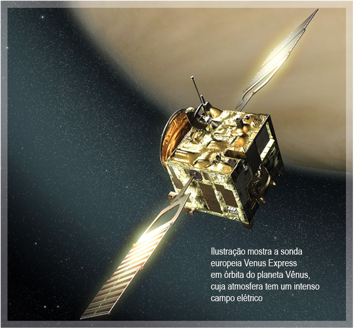 As camadas superiores da atmosfera de Vênus têm um campo elétrico muito mais intenso que a região equivalente da atmosfera terrestre. O campo venusiano é capaz de acelerar íons de oxigênio a altas velocidades e expulsá-los para o espaço, o que ajuda a explicar a ausência de vapor d’água no planeta, diz artigo publicado no periódico Geophysical Research Letters.