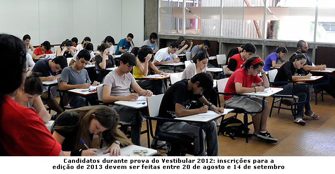 A Comissão Permanente para os Vestibulares da Unicamp (Comvest) está divulgando o calendário do Vestibular Nacional Unicamp 2013. As inscrições serão feitas entre 20 de agosto e 14 de setembro, exclusivamente pela internet, em formulário disponível na página eletrônica da Comvest. A primeira fase será realizada em 11 de novembro de 2012 e a segunda fase, nos dias 13, 14 e 15 de janeiro de 2013. As datas foram definidas em reunião que ocorreu no dia 10 de abril, na sede da Fuvest em São Paulo, com representantes da Fuvest, Unicamp, Unesp, Unifesp, ITA, PUC - São Paulo e PUC- Campinas. A programação dos principais vestibulares de São Paulo foi estabelecida conjuntamente para permitir aos candidatos interessados a participação nesses processos seletivos.