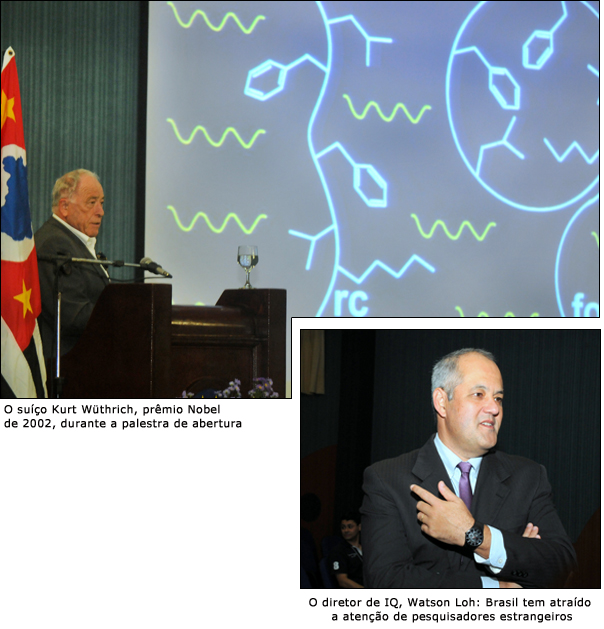 Uma palestra do ganhador do Nobel de Química de 2002, o suíço Kurt Wüthrich, abriu na noite do último dia 28 o 3º Congresso Internacional sobre Proteômica Analítica (3rd ICAP), que ocorre pela primeira vez no Brasil. Wüthrich falou a uma plateia constituída por docentes, pesquisadores e estudantes sobre o tema “Ressonância Magnética Nuclear: uma ferramenta analítica em genômica estrutural”. Organizado por um comitê constituído por docentes do Instituto de Química (IQ) da Unicamp, o 3rd ICAP prosseguiu até o dia 31, na cidade de São Pedro, a 100 quilômetros de Campinas. De acordo com o professor Marco Aurélio Zezzi Arruda, presidente do congresso, o evento contou com 110 inscritos vindos de diversos países do mundo, entre eles Espanha, Austrália, Rússia, Alemanha, Inglaterra e Estados Unidos. “São especialistas de diversas áreas, como medicina, biologia, química etc. Esta interação é muito importante, pois estamos caminhando cada vez mais para pesquisas com abordagens interdisciplinares. O fato de o Brasil sediar o congresso também merece destaque. Embora estejamos iniciando na área da proteômica, já contamos com grupos de pesquisa muito bons”, considera.