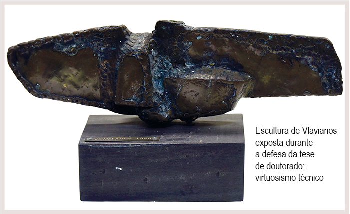 Ao tomar contato os trabalhos de Vlavianos, a quem não conhecia, Eliane imediatamente se apaixonou pela obra dele, sentimento que se aprofundou ao entrevistar o artista plástico para a tese. “Vlavianos é um escultor de grande virtuosismo técnico e uma pessoa extremamente acolhedora”, afirma a autora da pesquisa. De acordo com ela, o escultor grego deu importante contribuição ao desenvolvimento das artes plásticas no Brasil, país que adotou a partir de 1961, quando aqui desembarcou para representar a Grécia na VI Bienal de São Paulo.