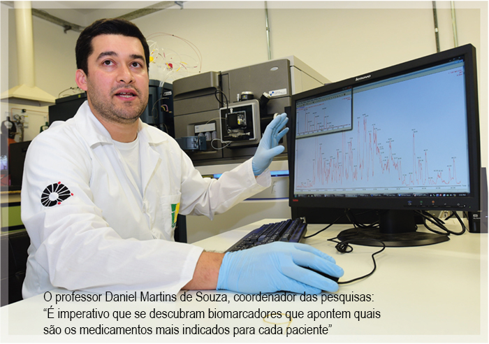 A depressão está relacionada ao humor e se manifesta, em geral, através da tristeza, da supressão da vontade. A esquizofrenia leva a comportamentos psicóticos, como enxergar e ouvir coisas sem existência real. Em nenhum dos dois casos o psiquiatra dispõe de apoio molecular para indicar o melhor medicamento e a dose em que deve ser aplicado, e se vale de suas vivências e experiências profissionais, que envolvem tentativas e erros. Este quadro dá uma ideia da importância das pesquisas realizadas no Laboratório de Neuroproteômica do IB.